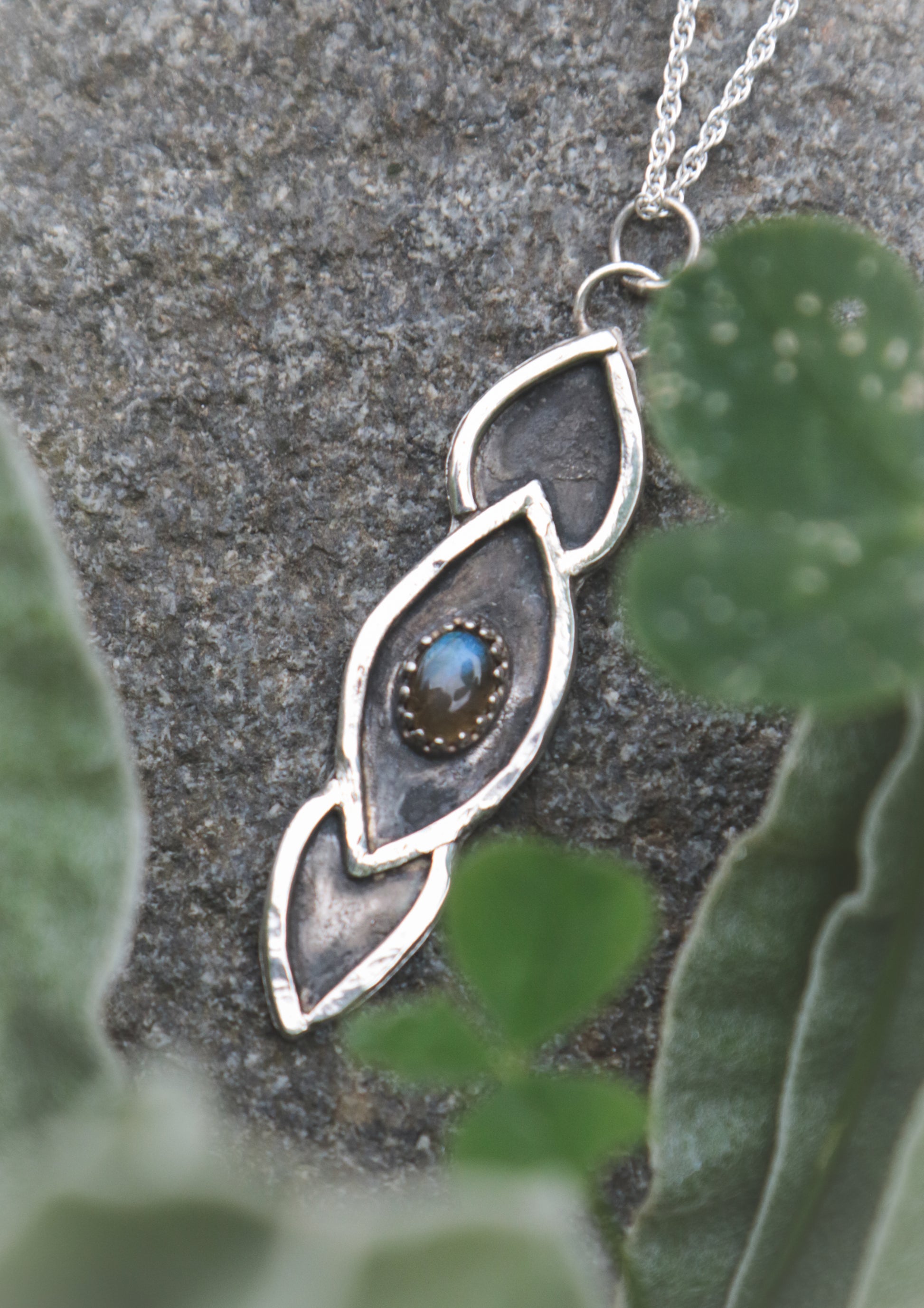 The pendant is approx. 5cm top to bottom and 1cm wide. It comes on an 18inch silver rope chain.